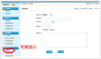 - 2. 点击左侧导航栏目中“我的问答”栏目下面的子栏目“我要提问”.