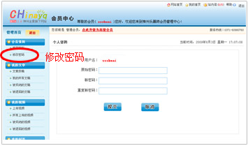 - 2. 点击左侧导航栏目中“会员资料”栏目下面的子栏目“修改密码”.